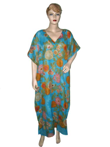 @@@ Evening Dress Womens Blue Floral Print Lightweight Sheer Cotton Coverup Dress Kaftan - - Review by Michael